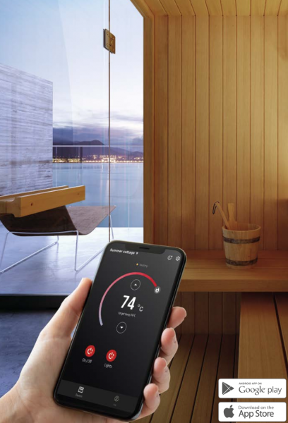 - Optional: verdunkeltes Glas, Chromotherapie, Bluetooth-Audio-Kit, mobile App zur Saunasteuerung