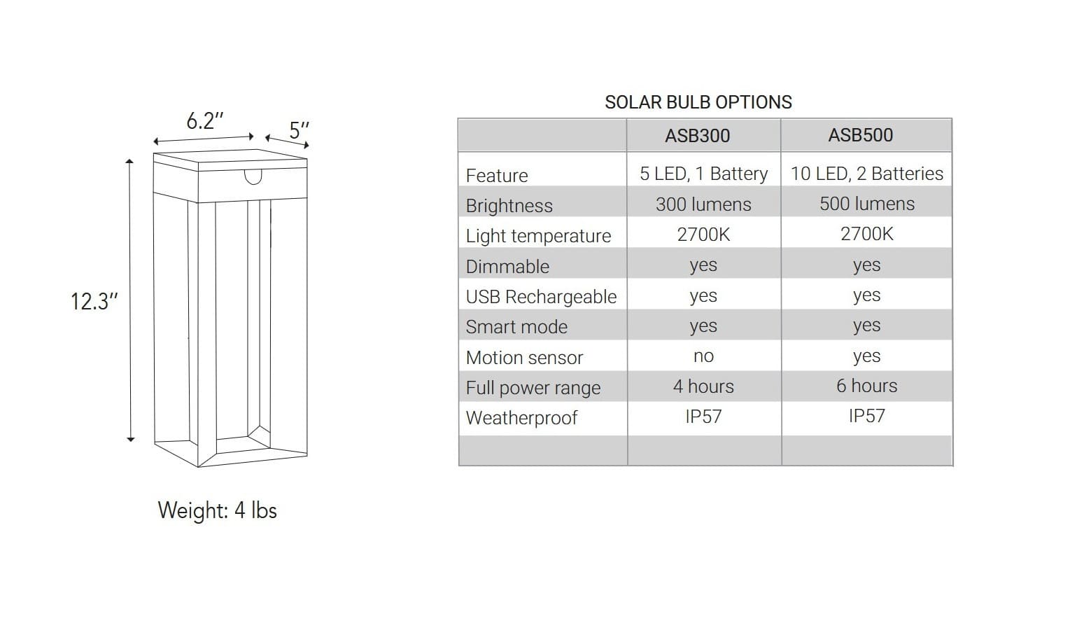 - Solarmodul: 5 × 5"