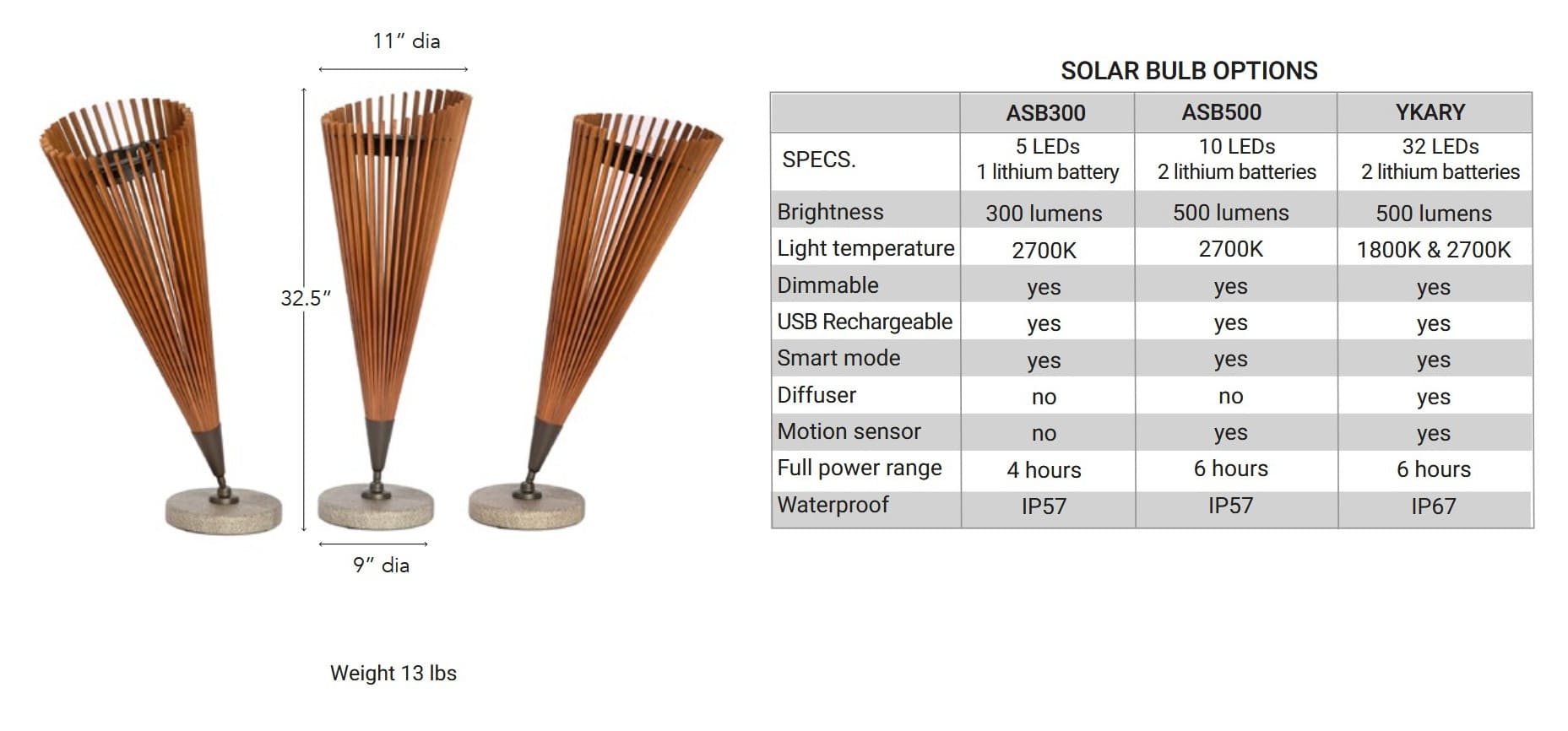 Hinsichtlich der Materialien überzeugt die Leuchte durch eine Kombination aus natürlichem Teakholz und einem Aluminiumrahmen mit hochwertiger bronzefarbener Oberfläche. Diese Materialwahl sorgt für eine hohe Witterungsbeständigkeit sowie eine lange Lebensdauer im Aussenbereich. Der Sockel besteht aus massivem Naturstein oder einem schweren Verbundmaterial, das für maximale Stabilität sorgt und gleichzeitig die skulpturale Wirkung der Leuchte unterstreicht.