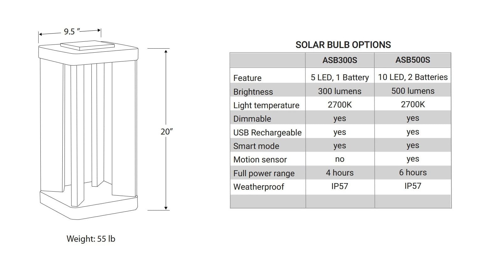 - Solarmodul: 5 × 5"