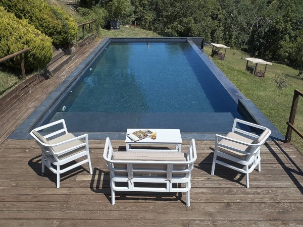 Click-Clack Gartenlounge wurde auf der Suche nach raffinierten Linien entworfen, mit einem klassischen, nüchternen und zeitlosen Aussehen, wobei den Proportionen mehr Bedeutung beigemessen wird als übertriebenen Details.