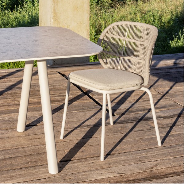 Ein taktiler Stuhl mit abgerundeter Rückenlehne und eleganten Kurven. Inspiriert von den vielseitigen Möglichkeiten, verschiedene Materialien in einzigartigen Designs zu vereinen, hat studio segers die Gartenstuhl Kodo entworfen. Industrielles Aluminium und taktiles Acrylseil spielen die Hauptrollen im Kodo Gartenstuhl. Diese Materialien sind witterungsbeständig und verleihen dem Gartenstuhl ein modernes Gefühl, während die weichen Kurven und abgerundeten Rückenlehnen eine warme und einladende Atmosphäre ausstrahlen.